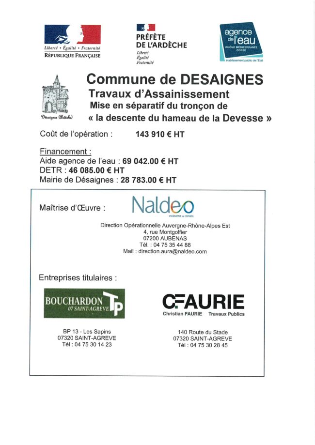 TRAVAUX D’ASSAINISSEMENT – MISE EN SéPARATIF DU TRONçON « LA DESCENTE DU HAMEAU DE LA DEVESSE » Flash informationPar Eliane25 novembre 2024