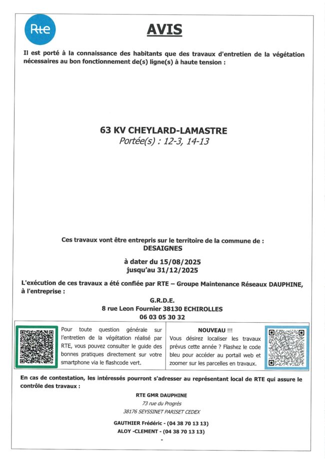 AVIS : TRAVAUX D’ENTRETIEN DE LA VéGétation néCESSAIRE AU BON FONCTIONNEMENT DES LIGNES HAUTES TENSION Flash informationPar Eliane7 juillet 2025
