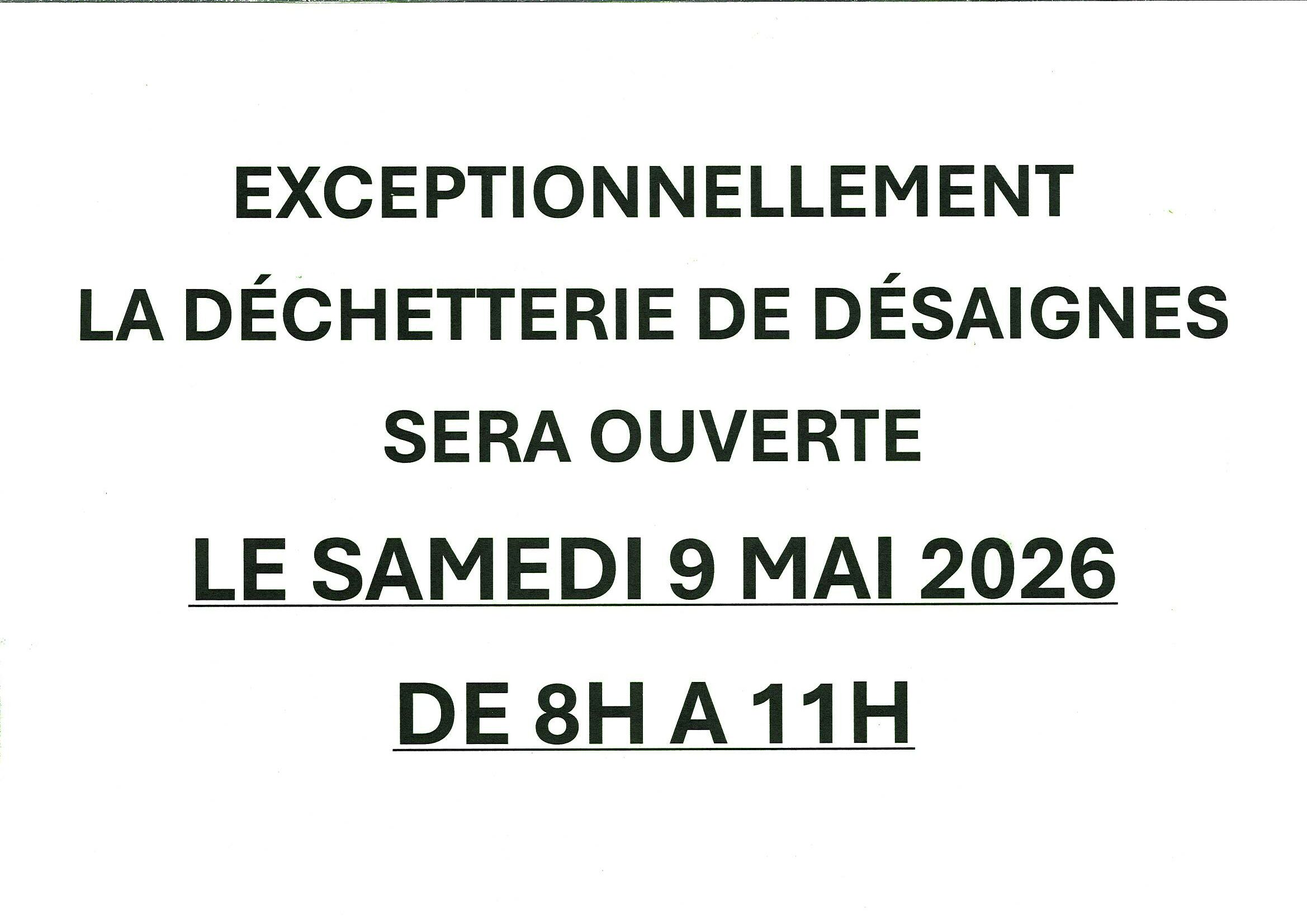 DECHETTERIE : CHANGEMENT D’HORAIRE SAMEDI 9 MAI