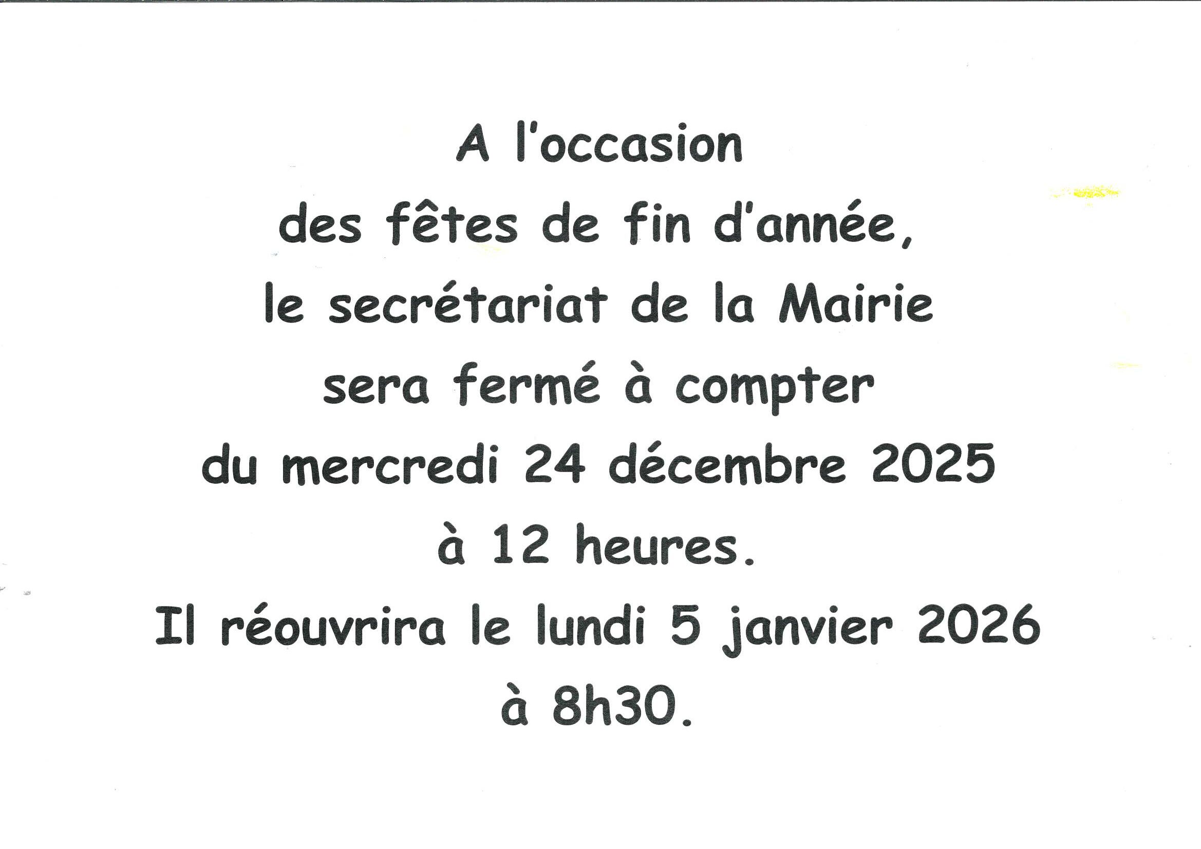 fermeture du secretariat de mairie